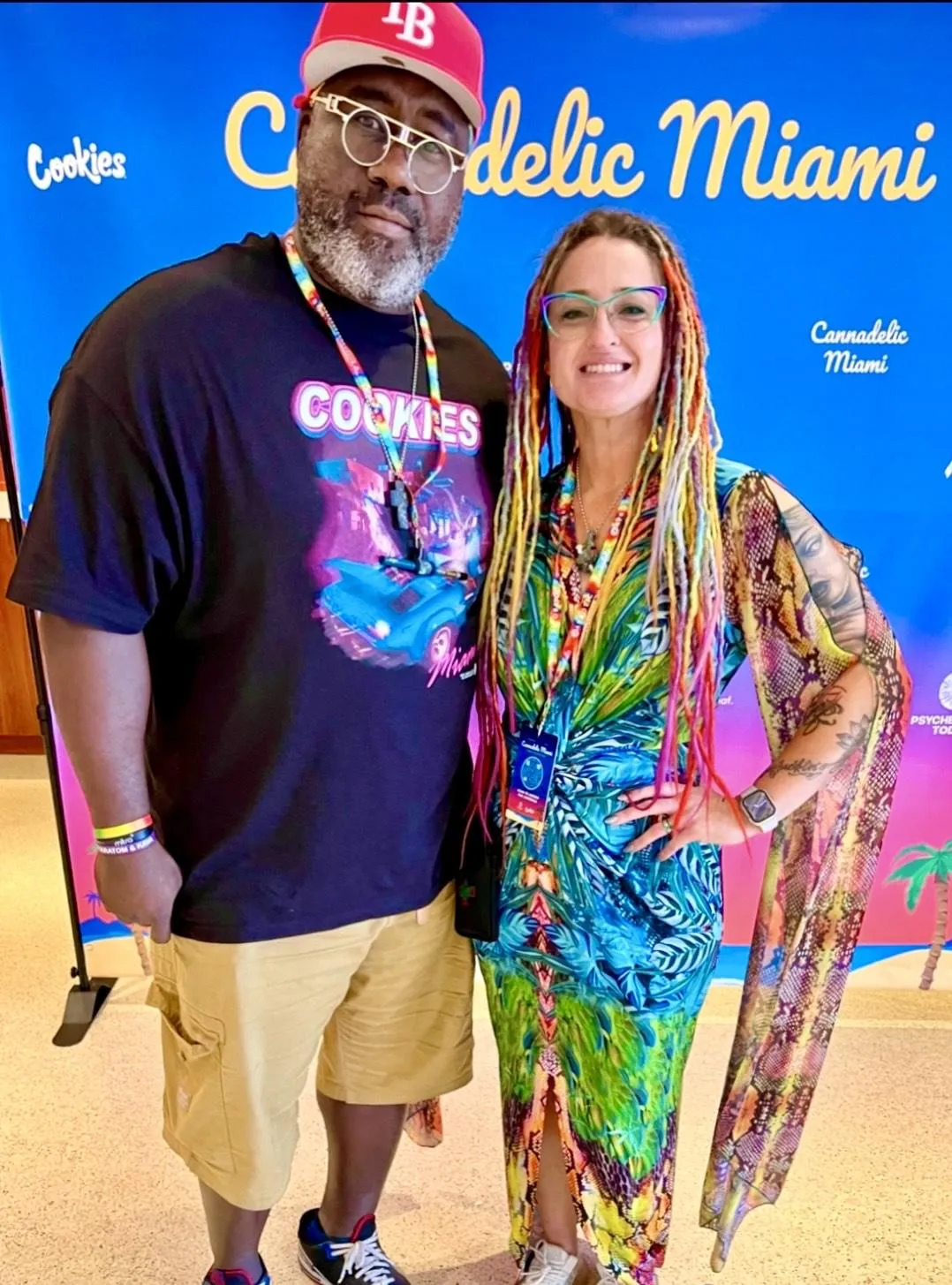 Tampa Bay Buccaneer Ian Beckles with Cannadelic Founder Colleen Murray, RN, 'Nurse Colleen' at Cannadelic Miami 2023. Their collaboration led to Cannadelic Summer St. Pete in July 2023. Ian and Colleen have filed a lawsuit in Hillsborough County, Florida, against Peter Sessa, Tom Quigley, and Creative Loafing for breach of contract after being cut out of profits from Cannadelic St. Pete and subsequent events.